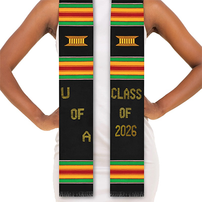 | BFSA Kente Stole Class Of 2026 Price: $30.00Item number 14161384 AFRICAN IMPORTS, LLC BFSA Kente Stole Class of 2026 Proudly display your achievements and solidarity with this vibrantly colored, Class of 2026, University of Alabama Kente Stole direct from West Africa. • Hand-woven in Ghana • *A portion of every sale goes to the BFSA (Black Faculty and Staff Association)*The University of Alabama's Black Faculty & Staff Association (BFSA) was established in the early 1970s with a mission to serve as an advocate for educational equity, with emphasis on African American students and the professional needs of its members. BFSA continues to have a strong presence at The University of Alabama, and its members include professionals from across the campus. The BFSA Kente Robing Ceremony requires an RSVP for student participation. Please visit bfsa.ua.edu to RSVP.Graduation Stoles & Cords: See more » | |