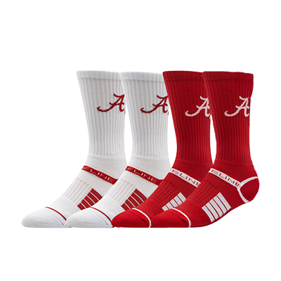 | Alabama Script A Half Calf 2-Pack Socks NEW! Price: $22.00ALABAMA SCRIPT A HALF CALF 2-PACK SOCKS Step into Crimson Tide spirit with the Alabama Script A Half Calf 2-Pack Socks. Featuring one crimson pair and one white pair, each with the bold Script A logo and athletic stripe detail, these socks combine comfort, durability, and Alabama pride in every step. One Size Fits Most. Perfect for workouts, walking across campus, or adding a touch of Bama style to your everyday outfits, this 2-pack ensures you’re always game-day ready from head to toe. Available now at the University of Alabama Supply Store—grab yours today and keep the Tide rolling with every stride. Roll Tide! Item number 14205330Strideline, LLC93% Polyester, 3% Rubber, 3% Nylon, 1% Spandex Made in The PhilippinesNew Items: See more » | |