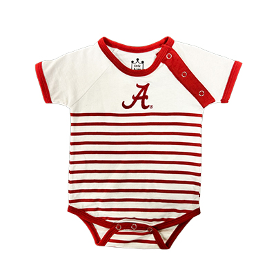 | Alabama Shoulder Strap Onesie NEW! Price: $30.00ALABAMA SHOULDER STRAP ONESIE Dress your tiniest Tide fan in absolute game-day cuteness with the Alabama Shoulder Strap Onesie! This charming crimson-and-white striped design features the classic Script A front and center, soft contrast trim, and an easy-snap shoulder panel that makes dressing and changing a breeze. It’s the perfect blend of comfort, school pride, and everyday wearability—made for little ones who are already part of the Crimson Tide family. Pick it up now at the University of Alabama Supply Store! With breathable fabric and bottom snap closures for quick changes, this onesie keeps your baby comfy at home, at tailgates, or during their very first Roll Tide celebration. A must-have for any Bama-loving family! Roll Tide! Product Description: A soft baby onesie with red and white stripes, red trim, a snap-button shoulder panel, and a crimson Alabama Script A on the chest. Item family: 13941901Keyser Little King, OK, LLC100% CottonMade in PakistanNew Items: See more » | |