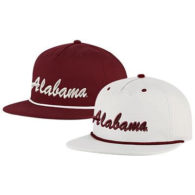 | Alabama 5 Panel Gamechanger Cap NEW! Price: $38.00ALABAMA 5 PANEL GAMECHANGER CAP Step up your game-day look with the Alabama 5 Panel Gamechanger Cap — a fresh twist on classic Crimson Tide style in White or Crimson. The bold “Alabama” embroidery across the front pops crimson against the clean white background, as do the white letters against the crimson hat. Accents on the brim and eyelets give it that unmistakable Bama flair. Designed with a structured five-panel construction and flat bill, this cap delivers both comfort and confidence whether you’re at Bryant-Denny or out in town. Show your team pride in standout style — available now at the University of Alabama Supply Store! Roll Tide! Product Description: A white five-panel hat with a flat brim, featuring crimson “Alabama” embroidery on the front and red accent details on the brim and eyelets. Item number: 14006425 White, 14006432 Crimson MV CORP INC. dba MV SPORT-THE GAME97% Polyester, 3% SpandexMade in ChinaMore Colors Available New Items: See more » | |