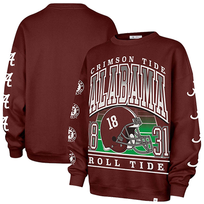 | Alabama Go Big Oversized Crew NEW! Price: $92.00ALABAMA GO BIG OVERSIZED CREW Make a sparkling statement in the Alabama Go Big Oversized Crew. This standout sweatshirt features oversized “ALABAMA” lettering, helmet graphics, and Crimson Tide details on the sleeves for an all-around display of team pride. Designed in a roomy fit, it’s perfect for fans who love comfort without sacrificing style. Available now at the University of Alabama Supply Store. Whether you’re layering up for gameday, heading to class, or relaxing at home, this oversized crew is the ultimate mix of cozy and spirited. Roll Tide! Product Description: A crimson oversized crew sweatshirt with bold Alabama graphics, helmet print, and Crimson Tide sleeve designs. Made for a relaxed fit and all-day comfort. Item number 14101106 TWINS ENTERPRISE INC/47 BRAND60% Cotton, 40% PolyesterMade in VietnamNew Items: See more » | |