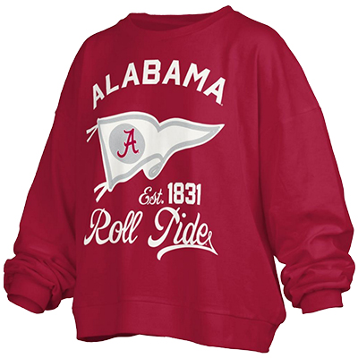 | Alabama Old Standard Puff Crew NEW! Price: $65.00ALABAMA OLD STANDARD PUFF CREW Keep your Tide spirit cozy and bold with the Alabama Old Standard Puff Crew! This rich crimson sweatshirt showcases a vintage pennant design with the Script A logo, “Est. 1831,” and “Roll Tide” in a textured print for extra flair. Perfect for game days or laid-back weekends, this oversized crew pairs comfort with a classic Alabama look that never goes out of style. Get yours today at the University of Alabama Supply Store and show the world your Crimson pride! Roll Tide! Product Description: A crimson crewneck sweatshirt featuring a puff-printed white pennant graphic with the Script A logo and “Roll Tide” text. Designed with a relaxed, oversized fit for all-day comfort. Item number 14128738Pressbox by Royce Apparel, Inc65% Cotton, 35% PolyesterMade in PakistanNew Items: See more » | |