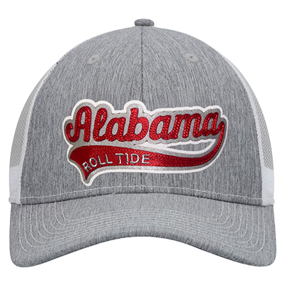 | Alabama Brant Cap NEW! Price: $36.00ALABAMA BRANT CAP Top off your Crimson Tide look with bold, vintage-inspired flair in the Alabama Brant Cap! This standout hat features a heather gray front panel, breathable white mesh backing, and an eye-catching raised “Alabama” script patch highlighted with a shiny crimson finish. The curved banner below proudly reads “Roll Tide,” giving this cap a spirited, classic vibe that’s perfect for everyday wear. Pick it up now at the University of Alabama Supply Store! Designed for comfort and style, the Brant Cap offers a relaxed fit, great airflow, and a timeless design that pairs effortlessly with gameday outfits, campus casuals, or weekend adventures. It’s the perfect accessory for fans who want a fresh take on Alabama pride. Roll Tide! Product Description: A heather gray and white mesh cap with a raised red “Alabama” script patch and “Roll Tide” banner on the front, featuring a curved brim and breathable back panels. Item family: 14131042Ahead, LLC100% PolyesterMade in ChinaNew Items: See more » | |