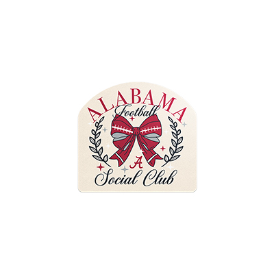 | Alabama Social Club Sticker NEW! Price: $5.00 - $6.00ALABAMA SOCIAL CLUB STICKER Show off your Crimson Tide pride with a touch of charm using the Alabama Social Club Sticker in one of 2 sizes! Featuring a football bow design surrounded by laurel leaves and elegant script, this sticker perfectly blends sporty spirit with Southern style. Whether you’re decking out your laptop, tumbler, or planner, it’s a classy way to celebrate your love for Alabama football. Available now at the University of Alabama Supply Store! Roll Tide! Product Description: A decorative sticker featuring a red football bow, laurel wreath, and “Alabama Football Social Club” text in script, designed to show team pride with a stylish twist. Item number 14136689 2.5”, 14136443 3.5”Image One by Luttrell InvestmentsMade in USANew Items: See more » | |