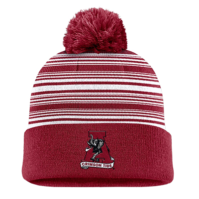 | Alabama Nike Peak Academic Standard Cuff Beanie NEW! Price: $30.00ALABAMA NIKE PEAK ACADEMIC STANDARD CUFF BEANIE Bring classic Crimson Tide style to cold-weather days with the Alabama Nike Peak Academic Standard Cuff Beanie. Featuring horizontal crimson and white striping, a bold Vault A with Big Al patch on the cuff, and a matching pom on top, this beanie delivers timeless Bama pride with a sporty edge. It’s a standout piece of Alabama apparel for game days, campus walks, and winter travel. The soft knit construction and fold-over cuff provide warmth and a comfortable, secure fit, while subtle Nike branding adds a polished finish. Whether you’re in the stands or out around town, this beanie is a must-have piece of Bama fan gear. Available now at the University of Alabama Supply Store, your trusted Alabama Official Store for officially licensed headwear. Roll Tide! Product Description: A crimson knit cuffed beanie with white horizontal stripes, a matching crimson pom on top, a Vault A with Big Al patch on the front cuff, and a Nike logo on the back. Item number 14139376Fanatics, Inc100% AcrylicMade in VietnamNew Items: See more » | |