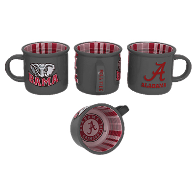 | Alabama Big Camper Relief Mug NEW! Price: $32.00ALABAMA BIG CAMPER RELIEF MUG Start your morning or warm up on a chilly gameday with the Alabama Big Camper Relief Mug! This sturdy, charcoal-gray mug is loaded with Crimson Tide spirit from every angle—featuring a bold Script A with “Alabama,” a detailed elephant with “BAMA,” and a vertical “ROLL TIDE” imprint down the handle. Inside, a vibrant crimson-and-white plaid pattern and a circular Script A logo at the bottom add an extra touch of Bama pride with every sip. Pick yours up now at the University of Alabama Supply Store! Perfect for coffee, cocoa, or your favorite tailgate drink, this large-format mug brings durability, style, and unmistakable Crimson Tide energy to your daily routine. Roll Tide! Product Description: A large gray ceramic mug featuring Alabama graphics on all sides, a plaid interior, and a Script A logo printed at the bottom inside. Item family: 14142802RFSJ IncMade in ChinaNew Items: See more » | |