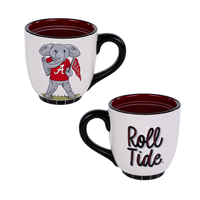 | Big AL Mug NEW! Price: $28.00BIG AL MUG Start your morning the Big Al way! This spirited mug features everyone’s favorite elephant in his crimson jersey alongside a bold “Roll Tide” script on the reverse. With a contrasting crimson interior and sleek black handle, it’s the perfect blend of classic Bama pride and everyday function. Whether you’re gearing up for gameday or powering through the workweek, this mug brings the energy of the Crimson Tide to every sip. Available now at the University of Alabama Supply Store—your go-to Alabama sports store for standout Bama merchandise. Roll Tide! Product Description: Ceramic mug with a white exterior, red interior, black handle, Big Al graphic in a crimson shirt, and “Roll Tide” text printed on the opposite side. Item number 14167492Glory HausCeramicImported ImportedNew Items: See more » | |