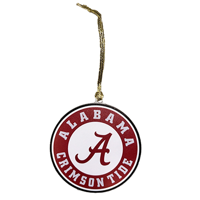 | Alabama Circle Logo Ornament NEW! Price: $15.00ALABAMA CIRCLE LOGO ORNAMENT Add classic Crimson Tide spirit to your holiday décor with the Alabama Circle Logo Ornament. Featuring the iconic Script A surrounded by “Alabama Crimson Tide” lettering, this bold crimson and white design makes it a standout addition to any tree or festive display. The gold cord allows for easy hanging, giving your holiday season the perfect touch of Bama pride. Ideal for students, alumni, or any Tide fan, this ornament is a timeless way to celebrate your Alabama spirit year after year. Available now at the University of Alabama Supply Store. Roll Tide! Item number 14172298WILCOX ENTERPRISES, LLCAcrylicMade in USANew Items: See more » | |