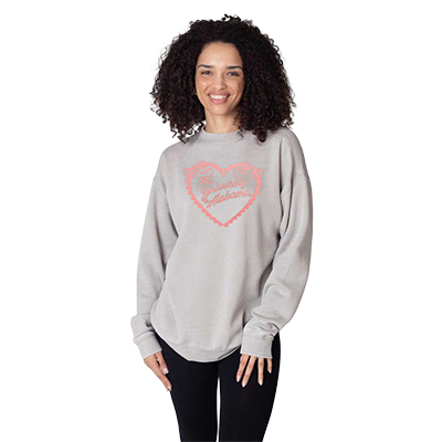 | Alabama Campus Crew With College Love Sweathsirt NEW! Price: $75.00ALABAMA CAMPUS CREW WITH COLLEGE LOVE SWEATHSIRT Show your Crimson Tide pride with a little extra heart. This Alabama Campus Crew features a charming “The University of Alabama” design framed in a bold heart graphic, making it the perfect blend of sweet style and serious school spirit. The relaxed fit and ultra-soft feel make it ideal for chilly game days, campus strolls, or cozy nights cheering on the Tide from home. Pair it with your favorite leggings or denim for an effortlessly cute look that reps Bama wherever you go. Whether you're a student, alum, or lifelong fan, this standout piece of Alabama apparel is available now at the University of Alabama Supply Store—your go-to Crimson Tide store for must-have Bama fan gear across the USA. Roll Tide! Product Description: A light gray crewneck sweatshirt with long sleeves and a pink heart graphic on the front that reads “The University of Alabama.” Item number 14174544Chicka-d by INDONESHA LLC/UNIVERSITY GIRLS60% Cotton, 40% Polyester Made in ChinaNew Items: See more » | |