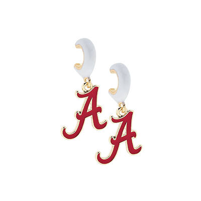 | Script A Huggie Hoop Earrings NEW! Price: $25.00SCRIPT A HUGGIE HOOP EARRINGS Add a bold touch of Crimson Tide pride to your everyday look with these Script A Huggie Hoop Earrings. Featuring a sleek crimson huggie hoop and a polished gold Script A charm, these earrings are the perfect blend of classic style and unmistakable Bama spirit. Lightweight and easy to wear, they’re made for game days in Bryant-Denny, alumni events, or simply showing off your Alabama pride wherever you go. Whether you’re shopping for yourself or the ultimate Bama fan in your life, these earrings are a standout piece of Alabama merch that pairs effortlessly with all your favorite Alabama apparel. Available now at the University of Alabama Supply Store—your go-to Crimson Tide store for must-have Bama fan gear. Roll Tide! Product Description: Pair of small crimson huggie hoop earrings with dangling gold Script A charms, designed for pierced ears. Item number 14180231Jane Envy, LLCMetal Made in ChinaNew Items: See more » | |