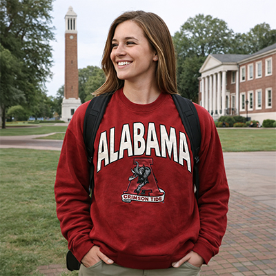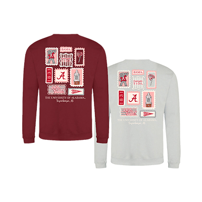 | Alabama Stamp Collage Crew NEW! Price: $45.00 - $50.00ALABAMA STAMP COLLAGE CREW Celebrate everything you love about the Capstone with the ALABAMA STAMP COLLAGE CREW. This standout sweatshirt features a unique back design with vintage-inspired “stamp” graphics including Big Al, the Script A, 1831, Denny Chimes, and Roll Tide details—plus a subtle Script A stamp on the front chest – available in 2 colors - Light gray (Moondust) or crimson (Red Hot Chilli). It’s the perfect blend of classic spirit and everyday comfort for game days, campus strolls, or repping Bama wherever you go. Available now at the University of Alabama Supply Store, your go-to Crimson Tide store for must-have Alabama apparel. Roll Tide! Product Description: Light gray (Moondust) or crimson (Red Hot Chilli) long-sleeve crewneck sweatshirt with a small Script A graphic on the front chest and a large Alabama-themed stamp collage design on the back featuring Big Al, Script A logos, 1831, Denny Chimes, and Roll Tide text. Item number 14278600Campus Collection100% CottonMade in HondurasMore Colors Available New Items: See more » | |