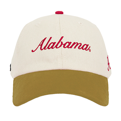 | Alabama Cotton Canvas Contrast Cap (Al Courd Cap) NEW! Price: $42.00ALABAMA COTTON CANVAS CONTRAST CAP Elevate your everyday Bama look with the ALABAMA COTTON CANVAS CONTRAST CAP. This standout hat features a cream crown with classic crimson “Alabama” script embroidery on the front and “Roll Tide” stitched on the back. The contrasting suede-feel brim adds rich texture and vintage flair, while the adjustable leather strap with brass buckle delivers a comfortable, custom fit. It’s a refined twist on traditional Alabama gear—perfect for game days, road trips, and everything in between. Top off your collection with this unique style, available now at the University of Alabama Supply Store, your trusted Crimson Tide store for distinctive Alabama merch and Bama fan gear. Roll Tide! Product Description: Cream adjustable cap with crimson “Alabama” script embroidered on the front, “Roll Tide” embroidered on the back, a contrasting suede-feel brim, and a brown leather strap with brass buckle closure. Item number 14192555Hype and Vice100% CottonMade in Honduras(CANVAS CORDUROY)New Items: See more » | |
