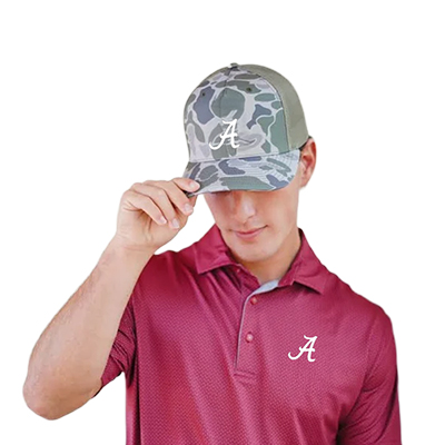 | Alabama Script A Camo Trucker Cap NEW! Price: $40.00ALABAMA SCRIPT A CAMO TRUCKER CAP Blend rugged style with unmistakable Crimson Tide pride in the Alabama Script A Camo Trucker Cap! Featuring a bold camo-patterned front, breathable mesh backing, and a crisp white Script A logo front and center, this cap delivers the perfect mix of outdoorsy attitude and Alabama spirit. Whether you’re heading to the game, hitting the trails, or just keeping it casual around town, this cap keeps your Bama pride on full display. Grab yours now at the University of Alabama Supply Store! With a comfortable structured fit and great airflow from the trucker-style mesh, it’s made for all-day wear—sunny afternoons, busy gamedays, and everything in between. A standout accessory for every Crimson Tide fan who loves a touch of camo flair. Roll Tide! Product Description: A camo-patterned trucker cap with mesh backing and a white Alabama Script A logo on the front. Item family: 14213649MV CORP INC. dba MV SPORT-THE GAME97% Polyester, 3% SpandexMade in ChinaNew Items: See more » | |