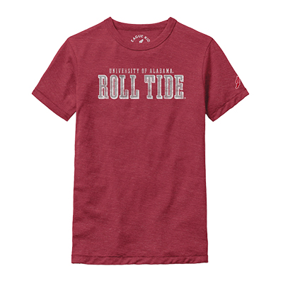 | University Of Alabama Roll Tide Youth T-Shirt NEW! Price: $30.00UNIVERSITY OF ALABAMA ROLL TIDE YOUTH T-SHIRT Keep it classic and let the pride shine. The University of Alabama Roll Tide Youth T-Shirt is a go-to staple for young Crimson Tide fans, featuring a bold “Roll Tide” graphic across the chest that never goes out of style. With its soft feel and easy everyday fit, this tee is perfect for game days, school days, and everything in between. Whether they’re cheering in the stands or repping Bama around town, this shirt makes it easy to show team spirit loud and proud. Available now at the University of Alabama Supply Store, your trusted Alabama merch destination for timeless fan favorites. Roll Tide! Product Description: A youth-sized short-sleeve T-shirt available in washed crimson or canvas, featuring “University of Alabama Roll Tide” printed across the front with a small Alabama logo on the sleeve. Item number 14254826League Kids by L2 Brands, LLC50% Polyester, 38% Cotton, 12% RayonMade in El SalvadorMore Colors Available New Items: See more » | |