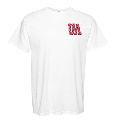 | Alabama Polka Dot Letters Comfort Color T-Shirt NEW! Price: $36.00 - $42.00ALABAMA POLKA DOT LETTERS COMFORT COLOR T-SHIRT Sweet, simple, and full of Crimson Tide pride—this ALABAMA POLKA DOT LETTERS COMFORT COLOR T-SHIRT is a game day favorite. Featuring “UA” in playful polka dot letters on the front and a bold “CRIMSON Tide.” graphic across the back, this tee blends classic spirit with a fun twist. The soft Comfort Colors fabric gives it that relaxed, lived-in feel perfect for class, tailgates, or cheering from anywhere in the country. It’s an easy standout piece of Alabama merch for fans who love timeless style with personality. Available now at the University of Alabama Supply Store, your go-to Alabama campus store for standout Bama fan gear. Roll Tide! Product Description: Crimson (CHILI) short-sleeve Comfort Colors T-shirt with white polka dot “UA” lettering on the front left chest and large “CRIMSON Tide.” text printed on the back. Item number 14274244Campus Collection100% CottonMade in HondurasNew Items: See more » | |