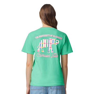 | Alabama Colorful Plaid Comfort Color T-Shirt NEW! Price: $36.00 - $42.00ALABAMA COLORFUL PLAID COMFORT COLOR T-SHIRT Add a pop of playful color to your Crimson Tide wardrobe with the ALABAMA COLORFUL PLAID COMFORT COLOR T-SHIRT. This fresh green tee features a small pink elephant and “Crimson Tide” script on the front, while the back showcases a bold plaid elephant graphic with “The University of Alabama” and “Crimson Tide” in coordinating pink. Made with that signature Comfort Colors softness, it delivers a relaxed, lived-in feel that fans love in their favorite Alabama apparel. Perfect for game days, campus strolls, or cheering from afar, this tee brings standout style to your Bama fan gear lineup. Available now at the University of Alabama Supply Store, your go-to Alabama campus store for standout Bama merchandise. Roll Tide! Product Description: Island green short-sleeve Comfort Colors T-shirt with a small pink elephant and “Crimson Tide” on the front chest and a large multicolor plaid elephant graphic with “The University of Alabama” and “Crimson Tide” text on the back.Item number 14274299Campus Collection100% CottonMade in HondurasNew Items: See more » | |
