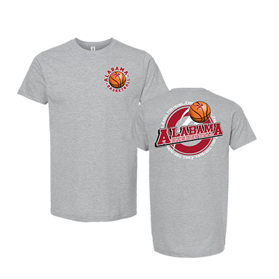 | Alabama Basketball Circle T-Shirt NEW! Price: $22.00 - $28.00ALABAMA BASKETBALL CIRCLE T-SHIRT Take your Tide pride to the paint with the ALABAMA BASKETBALL CIRCLE T-SHIRT. This heather gray tee features a front chest basketball graphic with Script A detail and a bold back design showcasing “Alabama Basketball” over a circular Crimson Tide emblem. It’s the perfect look for cheering on Bama hoops all season long—whether you’re in Coleman Coliseum or watching from home in your favorite Alabama apparel. Rep the Crimson Tide on and off the court—available now at the University of Alabama Supply Store, your go-to Alabama campus store for must-have Bama fan gear and Alabama merch. Roll Tide! Product Description: Heather gray short-sleeve T-shirt with a small Alabama Basketball logo and basketball graphic on the front chest and a larger circular Alabama Basketball design with a basketball on the back. Item number 14274763Campus Collection100% CottonMade in MexicoNew Items: See more » | |