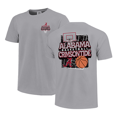 | Alabama Basketball Court Tshirt NEW! Price: $34.00ALABAMA BASKETBALL COURT TSHIRT - Youth Take your Crimson Tide pride to the hardwood with the ALABAMA BASKETBALL COURT TSHIRT. This sleek gray tee features a front chest graphic with a Script A over a basketball hoop, while the back brings the energy with a bold “Alabama Basketball Crimson Tide” design layered over a court backdrop and bright orange basketball. The dynamic graphic pops against the neutral base, making it a standout piece of Alabama apparel for every young hoops fan. Whether your young Bama-fan is in Coleman Coliseum or cheering from home, this tee keeps their game day style on point. Available now at the University of Alabama Supply Store, your go-to Alabama sports store for authentic Bama merchandise and fan favorites. Roll Tide! Product Description: Gray short-sleeve youth size T-shirt with a small Script A and basketball hoop graphic on the front chest and a large “Alabama Basketball Crimson Tide” court design with a hoop and orange basketball printed on the back.Item number 14279232Campus Collection100% CottonMade in HondurasNew Items: See more » | |