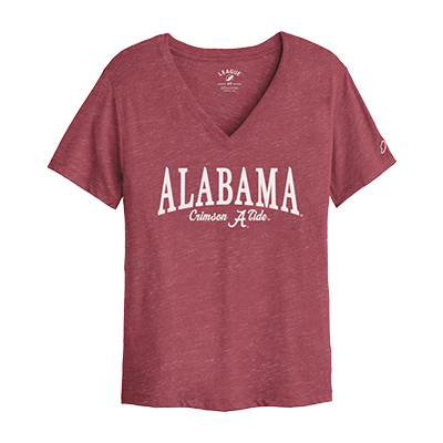 | Alabama Roll Tide Boyfriend V-Neck T-Shirt NEW! Price: $40.00ALABAMA ROLL TIDE BOYFRIEND V-NECK T-SHIRT Effortless, classic, and full of Crimson Tide pride—the Alabama Roll Tide Boyfriend V-Neck T-Shirt is a go-to for any fan. Featuring bold “Alabama” lettering with “Crimson Tide” beneath, this heathered crimson tee delivers that perfectly relaxed, lived-in feel you’ll reach for again and again. The flattering V-neck and easy boyfriend fit make it ideal for layering on cooler days or wearing solo on sunny game Saturdays. Available now at the University of Alabama Supply Store, your trusted Alabama merch destination for timeless Alabama apparel and Bama fan gear. Keep it simple. Keep it classic. Keep it Roll Tide. Roll Tide! Product Description: Heathered crimson short-sleeve V-neck T-shirt with “Alabama” and “Crimson Tide” text printed in white across the front. Item number 14140761League by L2 Brand, LLC50% Recycled Polyester, 38% Cotton, 12% RayonMade in El SalvadorT-Shirts: See more » | |