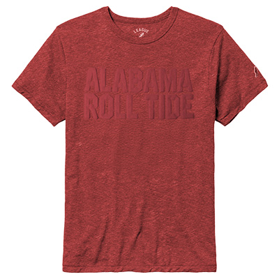 | Alabama Crimson Tide Distressed Lettering Short Sleeve T-Shirt Price: $30.00item number 14061134COLOSSEUM ATHLETICS CORP65% Polyester, 35% RayonMade in VietnamAlabama Crimson Tide Heathered T-Shirt Show your team pride with the Alabama Crimson Tide Heathered T-Shirt. This stylish crimson heathered t-shirt features "ALABAMA Crimson Tide" text on the front and a stylized letter "Script A" on the back. Made from soft, comfortable fabric, it's perfect for game day or everyday wear. Represent your school spirit in comfort and style with this must-have t-shirt. Available now at The University of Alabama.T-Shirts: See more » | |