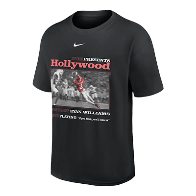 | Alabama Ryan Williams T-Shirt Price: $60.00ALABAMA RYAN WILLIAMS T-SHIRT Celebrate one of the Tide’s most electrifying playmakers with the Alabama Ryan Williams T-Shirt! Featuring bold Hollywood-style graphics and an action shot of Ryan Williams on the field, this Nike tee is perfect for fans who want to showcase their love for Alabama football and a fan-favorite. Don’t miss your chance to grab this must-have Bama merchandise—available now at the University of Alabama Supe Store! Roll Tide! Product Description: A black short-sleeve t-shirt by Nike with “Hollywood” graphics and an image of Alabama football player Ryan Williams in action on the front. Item number 14241956Nike from Fanatics, Inc100% Cotton, 12% RayonMade in MexicoT-Shirts: See more » | |