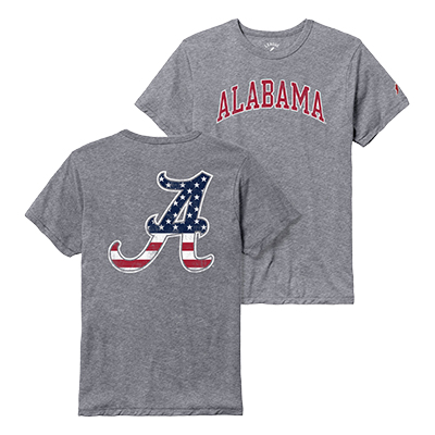 | Alabama American Script A Victory Falls T-Shirt Price: $38.00ALABAMA AMERICAN SCRIPT A VICTORY FALLS T-SHIRT Show your Crimson Tide pride with an all-American twist in the Alabama American Script A Victory Falls T-Shirt. Featuring a bold Script A filled with stars and stripes on the back and classic “Alabama” lettering across the front, this tee blends school spirit with patriotic style. The versatile gray color makes it an easy choice for game days, holidays, or everyday wear. Comfortable and timeless, this shirt is perfect for students, alumni, and fans who love Alabama gear with a standout design. Available now at the University of Alabama Supply Store, your trusted Alabama merch destination for iconic Bama fan gear and classic Alabama apparel. Roll Tide! Product Description: A short-sleeve gray T-shirt featuring “Alabama” text on the front and a large Script A graphic with an American flag design on the back. Item number 14272004League by L2 Brands50% Recycled Polyester, 38% Cotton, 12% RayonMade in El SalvadorT-Shirts: See more » | |