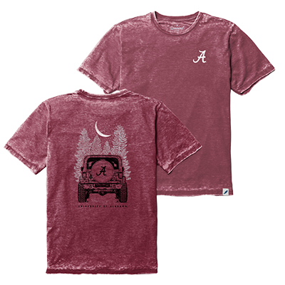 | Alabama Jeep Forest Burnout T-Shirt Price: $38.00ALABAMA JEEP FOREST BURNOUT T-SHIRT Bring together Crimson Tide pride and laid-back outdoor style with the Alabama Jeep Forest Burnout T-Shirt. Featuring a soft burnout fabric and a vintage-inspired look, this tee showcases a Jeep-style vehicle graphic set against a forest backdrop with the Alabama Script A front and center. The washed crimson tone gives it a worn-in feel that’s perfect for casual days, tailgates, or weekend adventures. Comfortable and full of character, this shirt is a great pick for Alabama fans who love unique graphics and relaxed style. Available now at the University of Alabama Supply Store, your trusted Alabama merch destination for standout Alabama apparel and Bama fan gear. Roll Tide! Product Description: A short-sleeve crimson burnout-style T-shirt featuring a small Script A on the front and a Jeep with forest graphic and Alabama branding on the back. Item number 14272073League by L2 Brands50% Polyester, 50% CottonMade in El SalvadorT-Shirts: See more » | |