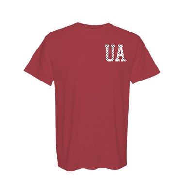 | Alabama Polka Dot Letters Comfort Color T-Shirt NEW! Price: $36.00 - $42.00ALABAMA POLKA DOT LETTERS COMFORT COLOR T-SHIRT Sweet, simple, and full of Crimson Tide pride—this ALABAMA POLKA DOT LETTERS COMFORT COLOR T-SHIRT is a game day favorite. Featuring “UA” in playful polka dot letters on the front and a bold “CRIMSON Tide.” graphic across the back, this tee blends classic spirit with a fun twist. The soft Comfort Colors fabric gives it that relaxed, lived-in feel perfect for class, tailgates, or cheering from anywhere in the country. It’s an easy standout piece of Alabama merch for fans who love timeless style with personality. Available now at the University of Alabama Supply Store, your go-to Alabama campus store for standout Bama fan gear. Roll Tide! Product Description: Crimson (CHILI) short-sleeve Comfort Colors T-shirt with white polka dot “UA” lettering on the front left chest and large “CRIMSON Tide.” text printed on the back. Item number 14274244Campus Collection100% CottonMade in HondurasT-Shirts: See more » | |