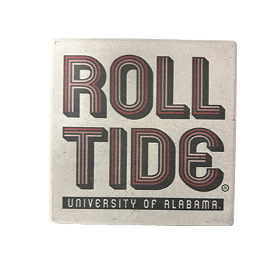 | University Of Alabama Roll Tide Single Square Coaster Price: $10.00UNIVERSITY OF ALABAMA ROLL TIDE SINGLE SQUARE COASTER Bring bold Crimson Tide energy to your space with the University of Alabama Roll Tide Single Square Coaster! Featuring striking block lettering and “University of Alabama” across the bottom, this sturdy coaster is perfect for keeping surfaces safe while showing off your school pride. Whether it’s holding your morning coffee during study sessions, keeping your desk tidy at work, or adding flair to game day watch parties, this coaster is a must-have for any Bama fan. Available now at the University of Alabama Supply Store! Roll Tide! Item number 13735449L&W ApparelCeramic with Cork BottomMade in USACups Mugs Drinkware: See more » | |