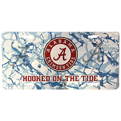 | Alabama Hooked On The Tide Hydro Bama License Plate NEW! Price: $40.00ALABAMA HOOKED ON THE TIDE HYDRO BAMA LICENSE PLATE Show your love for the Tide and the water with the Alabama Hooked on the Tide Hydro Bama License Plate! Featuring the Alabama Crimson Tide circle logo against a unique blue hydro-style background, this tag boldly declares that you’re “Hooked on the Tide.” Perfect for anglers, boaters, or any fan who bleeds crimson, this license plate brings together Alabama pride and an outdoorsy edge. Add it to your car, truck, or boat and rep the Tide everywhere you go. Available now at the University of Alabama Supply Store. Roll Tide! Product Description: A decorative aluminum license plate with a blue hydrographic background, the Alabama Crimson Tide circle logo, and the phrase “Hooked on the Tide” in crimson lettering. Designed to fit standard vehicle mounts. Item number 14190582Partners MarketingAluminumImportedCar & Bike Accessories: See more » | |