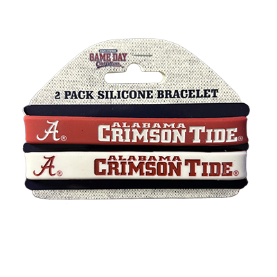 | Alabama Slim Silicone Bracelets Set Of Two Price: $8.00ALABAMA SLIM SILICONE BRACELETS SET OF TWO Show off your Crimson Tide pride wherever you go with the Alabama Slim Silicone Bracelets Set of Two! This spirited duo features one crimson and one white bracelet, each decorated with the classic Script A and bold “Alabama Crimson Tide” lettering. Made from soft, flexible silicone, these bracelets are perfect for everyday wear — whether you’re at class, tailgating, or cheering from home. Available now at the University of Alabama Supe Store — an easy and stylish way to rep Bama pride on both wrists! Roll Tide! Product Description: A set of two slim silicone bracelets, one crimson and one white, each featuring the Alabama Script A logo and “Alabama Crimson Tide” text for everyday fan wear. Item number: 13659776Gameday Outfitters by JENKINS ENTERPRISES, LLCsiliconeMade in ChinaJewelry: See more » | |