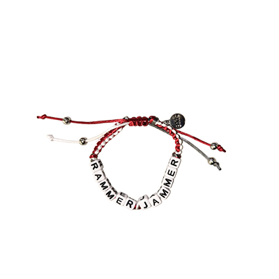 | Alabama Rammer Jammer Box Braid Bracelet With Words Price: $18.00ALABAMA RAMMER JAMMER BOX BRAID BRACELET WITH WORDS Celebrate every Crimson Tide victory in style with the Alabama Rammer Jammer Box Braid Bracelet! Featuring bold white letter beads that spell out “Rammer Jammer,” this handmade-style bracelet showcases Alabama’s iconic chant in true fan fashion. The braided crimson, white, and silver cords add the perfect pop of team color, making it a standout accessory for any Bama fan. Wear it on game day, around campus, or anywhere you want to show your Alabama pride! Available now at the University of Alabama Supply Store. Roll Tide! Product Description: A braided crimson, white, and silver string bracelet with letter beads spelling “Rammer Jammer” and small metallic accents. Item number 14056642 Bead Me Silly by MARRINAN and ASSOCIATES dba JARDINE ASSOCIATESMetalMade in USAJewelry: See more » | |