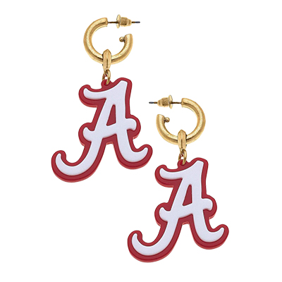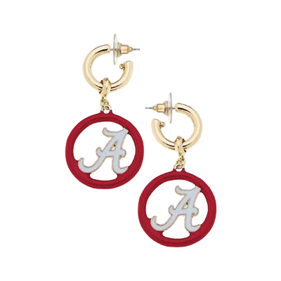 | Script A In Hoop Earrings Price: $26.00SCRIPT A IN HOOP EARRINGS Add a bold touch of Crimson Tide flair to your look with the Script A In Hoop Earrings! These stylish crimson hoops feature the classic white Script A logo at the center, blending timeless Alabama pride with modern design. Lightweight and eye-catching, they’re the perfect finishing touch for Gameday outfits or any day you want to show your Bama spirit in style. Stand out with true Tide pride—available now at the University of Alabama Supply Store! Roll Tide! Product Description: A pair of crimson hoop earrings with white Script A logos centered inside each hoop. Item number: 14073816Canvas Style by JANE ENVY LLCMetalMade in ChinaJewelry: See more » | |