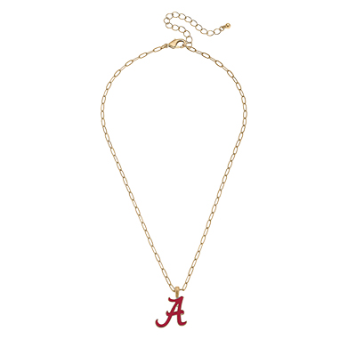 | Script A Pendant Necklace Price: $28.00SCRIPT A PENDANT NECKLACE Show your Crimson Tide spirit with a touch of elegance in the Script A Pendant Necklace! This gold chain necklace features a dainty crimson Script A charm, perfect for adding subtle Alabama pride to any outfit. Whether you’re dressing up for Gameday or adding a hint of Bama flair to your everyday look, this piece is a timeless way to represent the Tide. A classy statement for every fan—available now at the University of Alabama Supply Store! Roll Tide! Product Description: A gold chain necklace with a small crimson Script A pendant charm. Item number: 14180491Canvas Style by JANE ENVY LLCMetalMade in ChinaJewelry: See more » | |