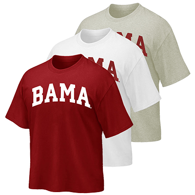 | Bama Tshirt Price: $20.00BAMA TSHIRT Keep young Crimson Tide fans geared up in classic style with the Youth Bama T-Shirt. Featuring bold “BAMA” lettering across the chest, this tee delivers timeless Alabama pride that’s perfect for school days, game days, and everything in between. Simple, comfortable, and easy to wear, it’s a staple piece of Bama fan gear for kids. Designed with a soft cotton feel and a relaxed youth fit, this t-shirt is made for all-day comfort and active wear. Available in versatile color options, it pairs easily with jeans, shorts, or athletic wear. It’s a must-have piece of Alabama apparel for the next generation of fans. Available now at the University of Alabama Supply Store, your go-to Alabama sports store for youth favorites. Roll Tide! Product Description: A youth-sized short-sleeve t-shirt with a crew neckline, featuring large “BAMA” block lettering printed across the front, available in multiple colors. Item number 14037450MV CORP INC. dba MV SPORT-THE GAME45% Polyester, 55% CottonMade in Pakistan More Colors Available Kids: See more » | |