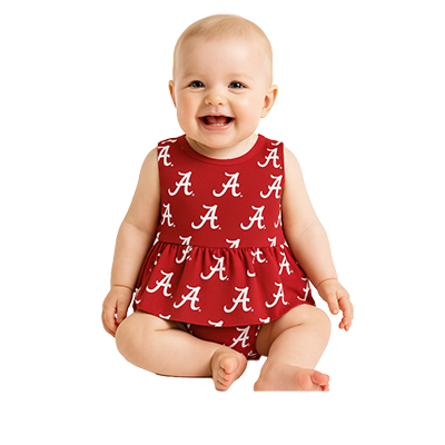 | Script A Poplin Onesie Dress Price: $50.00SCRIPT A POPLIN ONESIE DRESS Your little Tide fan will steal the spotlight in this adorable Script A Poplin Onesie Dress! Covered in an all-over crimson and white Alabama Script A print, this sweet outfit combines game day spirit with ultimate comfort. The soft, breathable fabric keeps your baby cozy, while the attached bloomers make it perfect for easy wear and playtime. Whether it’s a family tailgate, a photo day, or cheering on Bama from home, this darling dress is the cutest way to show Crimson Tide pride from the very start. Available now at the University of Alabama Supply Store! Roll Tide! Product Description: Infant crimson onesie dress featuring an all-over white Script A print and attached bloomers. Item number: 14220685Stewart Simmons, LLC100% Cotton Made in IndiaKids: See more » | |