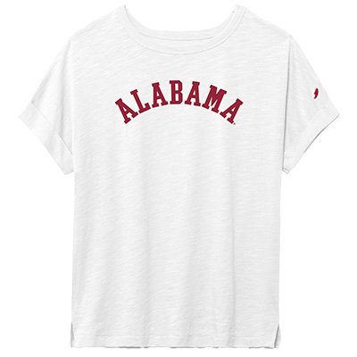 | Alabama Slub T-Shirt Price: $48.00ALABAMA SLUB T-SHIRT Keep it classic and comfy with the Alabama Slub T-Shirt, featuring bold crimson appliquéd letters arched across a soft white slub cotton tee. With its relaxed fit, cuffed sleeves, and subtle rolled edges, this shirt offers an effortlessly cool look that’s perfect for game days, study sessions, or everyday wear. The clean and timeless design makes it a versatile must-have for any Crimson Tide fan’s wardrobe. Score yours today at the University of Alabama Supply Store and show your Bama pride in style! Roll Tide! Item number 13994099L2 Brands, Inc100% CottonMade in GuatemalaWomen: See more » | |