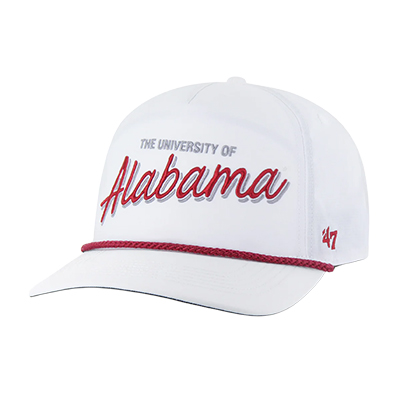 | Alabama Brrr Fairway 47 Hitch Cap Price: $40.00ALABAMA BRRR FAIRWAY 47 HITCH CAP Stay cool and stylish with the Alabama BRRR Fairway 47 Hitch Cap. Featuring bold embroidered “The University of Alabama” text above a striking crimson “Alabama” script, this white cap is accented with a crimson rope detail across the brim for a clean, classic finish. The ’47 logo on the side adds a trusted touch of quality to this must-have accessory. Perfect for hot gamedays at Bryant-Denny, a round of golf with friends, or just walking across campus, this cap’s lightweight and breathable design keeps you comfortable while showing off your Crimson Tide pride. Available now at the University of Alabama Supply Store—add this crisp Alabama cap to your rotation today. Roll Tide! Item number 1410410Twins Enterprise Inc/47 Brand100% BRRR NylonMade in VietnamCaps, Hats, & Beanies: See more » | |
