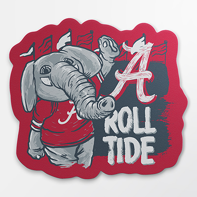 | Alabama Big AL Sticker NEW! Price: $6.00ALABAMA BIG AL STICKER Bring the spirit of the Tide everywhere you go with the Alabama Big Al Sticker! Featuring the beloved Big Al waving proudly beside the Script A and “Roll Tide” text, this design captures the fun and energy of Alabama game days. With its vibrant crimson and gray color scheme, it’s perfect for decorating laptops, water bottles, or notebooks. Available now at the University of Alabama Supply Store! Roll Tide! Product Description: A sticker featuring Big Al in a crimson jersey beside the Script A logo and “Roll Tide” text, set against a crimson and gray background. Item number 14136429 3.5”Image One by Luttrell InvestmentsMade in USANew Items: See more » | |