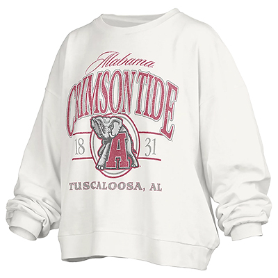 | Alabama Vinson Melange Janise Crew Price: $67.00ALABAMA VINSON MELANGE JANISE CREW Show off classic Crimson Tide spirit with the Alabama Vinson Melange Janise Crew! This soft, white crewneck features a vintage-inspired design with bold “Alabama Crimson Tide” lettering, the founding year 1831, and an iconic elephant standing proudly over the Script A. With its relaxed fit and cozy feel, this sweatshirt delivers the perfect balance of comfort and team pride for any true Bama fan. Celebrate the Tide in timeless style—available now at the University of Alabama Supe Store! Roll Tide! Product Description: A white crewneck sweatshirt with a vintage-style “Alabama Crimson Tide” graphic, elephant and Script A design, and “Tuscaloosa, AL” printed underneath. Item number: 14128837Pressbox by Royce Apparel, Inc45% Polyester, 55% Cotton Made in PakistanSweats, Jackets, & Pullovers: See more » | |