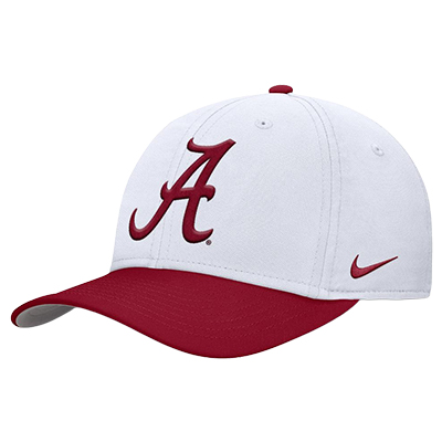 | Alabama Script A Two-Tone Nike Dri-Fit Rise Structured Aerobill Swooshflex Cap NEW! Price: $38.00ALABAMA SCRIPT A TWO-TONE NIKE DRI-FIT RISE STRUCTURED AEROBILL SWOOSHFLEX CAP Top off your game day look with the ALABAMA SCRIPT A TWO-TONE NIKE DRI-FIT RISE STRUCTURED AEROBILL SWOOSHFLEX CAP. This sharp two-tone design pairs a crisp white crown with a bold crimson bill, highlighted by the iconic Script A on the front for unmistakable Crimson Tide pride. Built with Nike Dri-FIT technology and an AeroBill design in 3 available sizes, it offers lightweight comfort and breathable performance whether you're in the stands, on the course, or out around town. Available now at the University of Alabama Supply Store, your trusted Alabama merch destination for premium Bama fan gear. Roll Tide! Product Description: White and crimson Nike structured flex-fit cap with a crimson embroidered Script A on the front, Nike Swoosh on the side, crimson bill, and “Alabama” embroidered on the back. Available in 3 sizes.Item number 14105388Nike from Fanatics, Inc 100% PolyesterMade in VietnamCaps, Hats, & Beanies: See more » | |