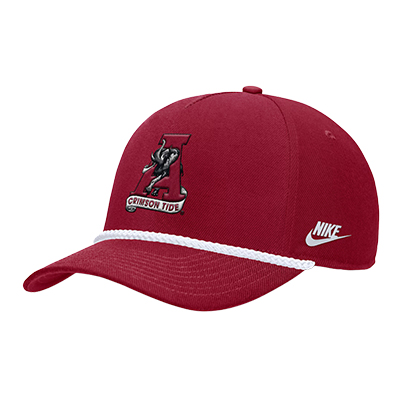 | Alabama Nike Rise 5 Panel Vault A Rope Structured Trucker Cap NEW! Price: $40.00ALABAMA NIKE RISE 5 PANEL VAULT A ROPE STRUCTURED TRUCKER CAP Bring vintage Crimson Tide style to your lineup with the ALABAMA NIKE RISE 5 PANEL VAULT A ROPE STRUCTURED TRUCKER CAP. This bold crimson cap features the classic Vault A logo with Big Al charging through the letter, giving it a timeless Alabama look fans love. The structured 5-panel design and retro rope detail across the bill add a throwback feel, while the Nike touch keeps it fresh for game day or everyday wear. Available in 3 sizes now at the University of Alabama Supply Store, your trusted Crimson Tide store for standout Alabama gear and Bama fan favorites. Roll Tide! Product Description: Crimson Nike structured trucker-style cap with a vintage Vault A logo featuring Big Al on the front, a white rope across the bill, and an adjustable snapback closure in 3 sizes.Item number 14170720Nike from Fanatics, Inc 100% CottonMade in VietnamCaps, Hats, & Beanies: See more » | |