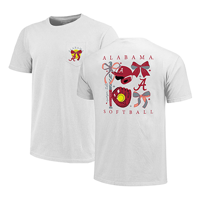 | Alabama Bows And Bats Tshirt Price: $34.00ALABAMA BOWS AND BATS TSHIRT Bring a little extra flair to your game day look with the ALABAMA BOWS AND BATS TSHIRT. This light gray tee features a small front pocket graphic with the Script A and bow detail, while the back showcases a playful Alabama Softball design with bows, a bat, sunglasses, and a glove with softball graphics. It’s the perfect mix of sporty and spirited for cheering on the Crimson Tide at the ballpark or around town, making it a fun addition to your favorite Alabama apparel. Available now at the University of Alabama Supply Store, your trusted Crimson Tide store for unique Bama fan gear across the country. Roll Tide! Product Description: Light gray short-sleeve T-shirt with a small front pocket graphic featuring an Alabama Script A and bow, and a large back graphic with bows, a softball glove, softball, bat, sunglasses, and “Alabama Softball” text.Item number 14278785LUTTRELL INVESTMENTS INC100% CottonMade in HondurasKids: See more » | |