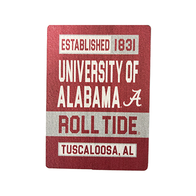 | Alabama Roll Tide Stack Wood Magnet Price: $13.00ALABAMA ROLL TIDE STACK WOOD MAGNET Add a touch of Crimson Tide tradition to any space with the Alabama Roll Tide Stack Wood Magnet! With bold lettering and the classic Script A, this magnet is set against a wood-inspired design that brings a rustic yet spirited look to your home, office, or dorm. Perfect for holding up class schedules, tailgate invites, or just showing off your Alabama pride on the fridge or locker, this 2.5” x 3.5” magnet is a must-have for any fan. Available now at the University of Alabama Supe Store! Roll Tide! Item number 13267971L & W ApparelMDF MagnetMade in ChinaDecals, Magnets, Stickers, & Tattoos: See more » | |
