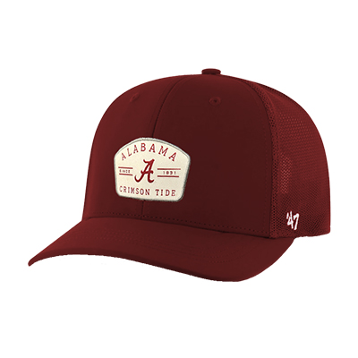 | Alabama Script A Crimson Tide Trucker NEW! Price: $35.00ALABAMA SCRIPT A CRIMSON TIDE TRUCKER Top off your game day look with the Alabama Script A Crimson Tide Trucker. This classic crimson cap features a cream patch with the Script A logo, “Alabama Crimson Tide,” and the founding year, 1831, giving it a timeless and vintage-inspired style. Available now at the University of Alabama Supply Store. Designed with a structured front and breathable mesh back, this trucker hat combines comfort and durability, making it perfect for tailgates, campus wear, or everyday outings while repping the Tide. Roll Tide! Product Description: A crimson trucker-style cap with a cream patch featuring the Alabama Script A logo and “Crimson Tide” text, mesh back panels, and adjustable fit. Item number 14101496 TWINS ENTERPISE INC/47 BRAND65% Polyester, 15% Cotton; 100% Polyester MeshMade in MacouNew Items: See more » | |