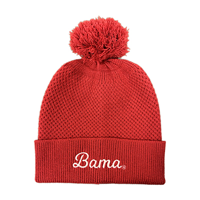 | Bama Script Fashion Knit Beanie Price: $26.00BAMA SCRIPT FASHION KNIT BEANIE Stay cozy and stylish while repping the Tide with the Bama Script Fashion Knit Beanie! Featuring a soft knit design, a fun pom on top, and “Bama” stitched in script across the cuff, this beanie keeps your Alabama pride front and center all winter long. Perfect for chilly walks across campus, late-night study sessions at the library, or cheering on the Tide at cold-weather games, this beanie blends comfort and Crimson Tide style. Available now at the University of Alabama Supe Store! Roll Tide! Item number 14112607ZooZatz by ROSS SPORTSWEAR INC51% Rayon, 30% Polyester, 19% NylonMade in ChinaCaps, Hats, & Beanies: See more » | |
