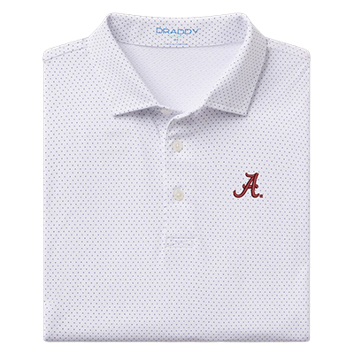| Alabama Script A Cool Polo Price: $145.00ALABAMA SCRIPT A COOL POLO by Draddy Sport Elevate your Crimson Tide look with the Alabama Script A Cool Polo by Draddy. This crisp white polo features a subtle dotted pattern and an embroidered crimson Script A logo, offering a refined balance of team pride and everyday sophistication. Crafted from premium, breathable fabric, it’s ideal for staying cool and comfortable whether you’re on the golf course, at the office, or cheering from the stands. Available now at the University of Alabama Supply Store—where classic style meets true Alabama tradition. Roll Tide! Product Description: A white Draddy polo with a small dotted pattern and an embroidered crimson Alabama Script A logo, designed for lightweight comfort and a polished look. Item number 14209208Draddy Sport by Summit Golf Brands94% Nylon, 6% SpandexMade in ChinaMen: See more » | |