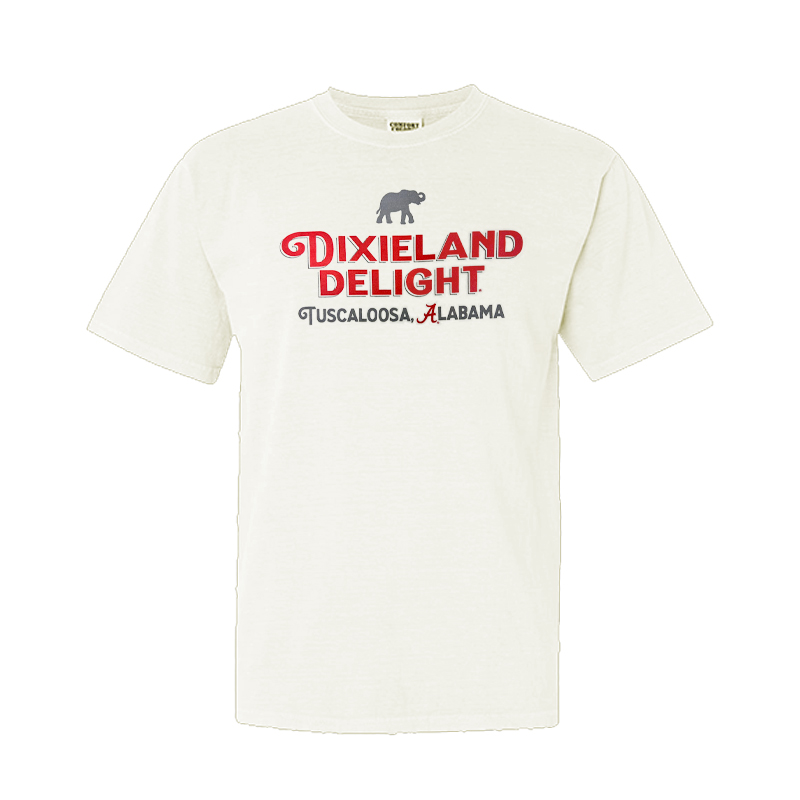 Celebrate one of the most beloved Crimson Tide traditions with the Alabama Dixieland Delight T-Shirt! This tee pays homage to the legendary game day anthem that unites fans across Bryant-Denny Stadium. Featuring bold “Dixieland Delight” lettering with a proud elephant graphic and “Tuscaloosa, Alabama” script, this shirt captures the heart and soul of Alabama pride.