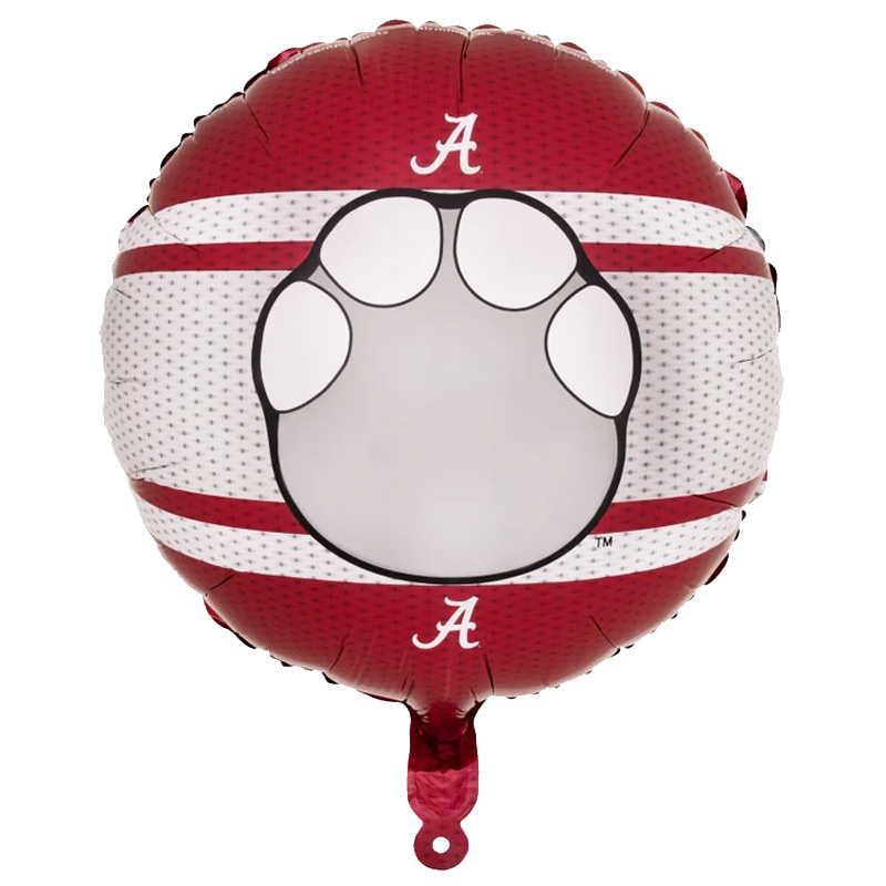 Bring the party to life with the Alabama Big Al Mylar Balloon. Featuring the beloved Crimson Tide mascot Big Al in a bold red jersey with the iconic white "A," this festive balloon is perfect for tailgates, graduations, or any Alabama-themed celebration. With "ROLL TIDE" proudly displayed and a sporty design, it’s a fun and spirited way to show your team pride.