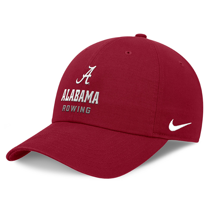 Celebrate strength, teamwork, and Crimson Tide pride with the Alabama Rowing Nike Club Unstructured Cap! This classic crimson hat features the timeless Script A and bold “Alabama Rowing” embroidery, paired with the Nike Swoosh for a sleek, sporty finish. With its relaxed fit and adjustable backstrap, it’s built for comfort whether you’re on the water or cheering from the shore.
